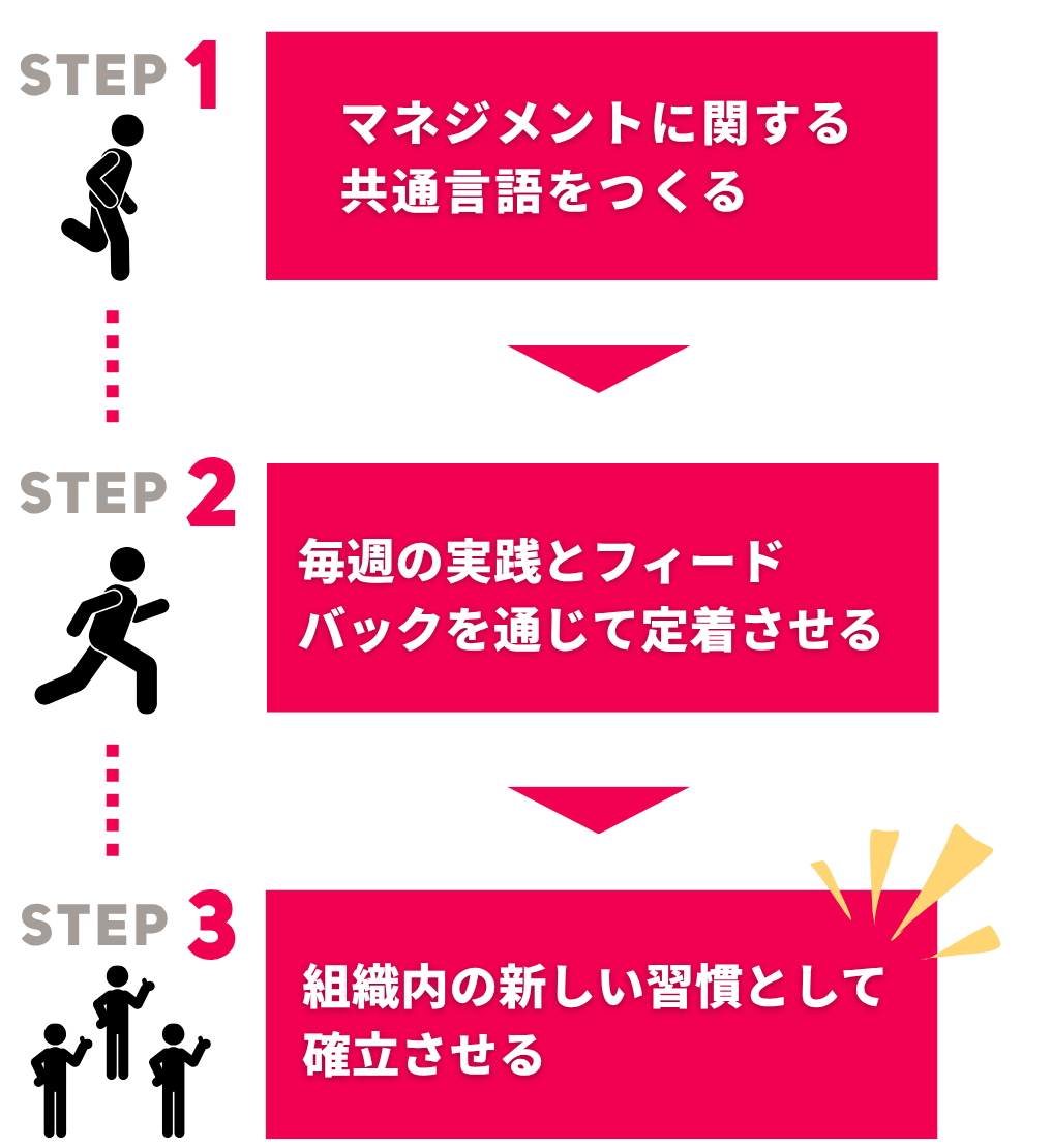 ▶︎役員・部長・マネジャー・リーダーなど複数階層で毎月マネジメントの共通言語をつくる